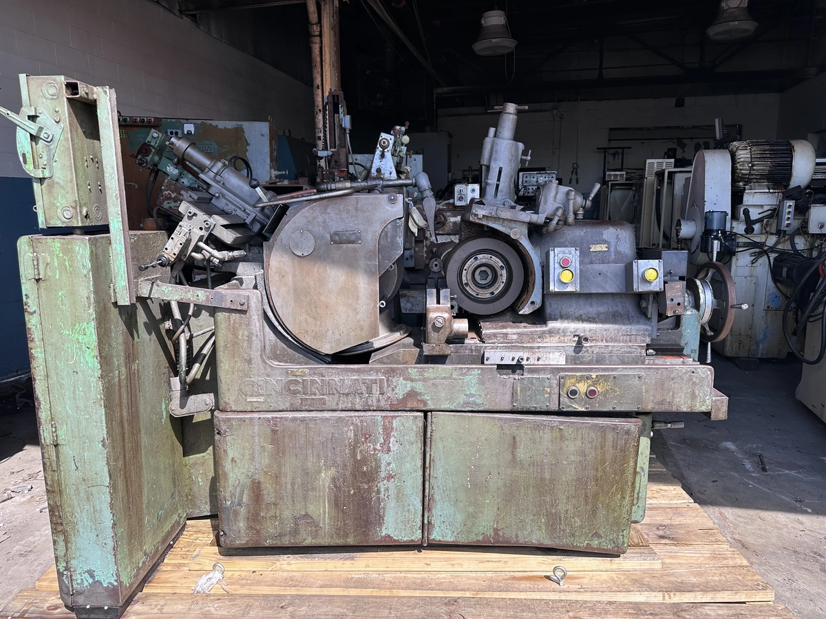 CINCINNATI #2 OM centerless grinder, 20" size capacity. Features include filmatic bearings and hydraulic contour truing. 15 HP motor drives the grinding wheel.