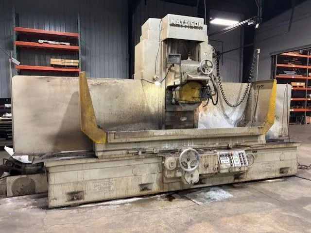 MATTISON 14 X 16 X 72 Surface Grinder, used. Features a 14" x 72" horizontal reciprocating table, powered by 25 HP motor. Equipped with a 3" wide, 20" diameter grinding wheel. Ideal for precise industrial grinding needs.