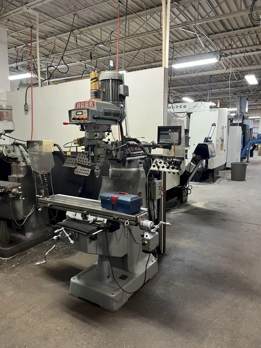 ACER EVS-3VSII vertical mill, 2013 model, used condition. Features include a 9" x 49" table, 28" longitudinal travel, 12" cross travel, 3 HP power, 4500 RPM, and R-8 taper. Ideal for precision milling tasks.